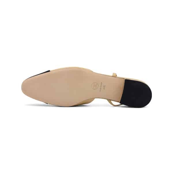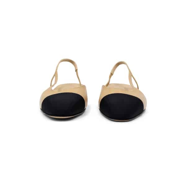 Designed for both style and comfort, this flat version offers effortless wearability while maintaining its polished appeal. The slingback strap ensures a secure fit, while the streamlined profile and soft construction make it ideal for all-day wear. The harmonious blend of materials and colours creates a versatile shoe that transitions seamlessly from day to evening.