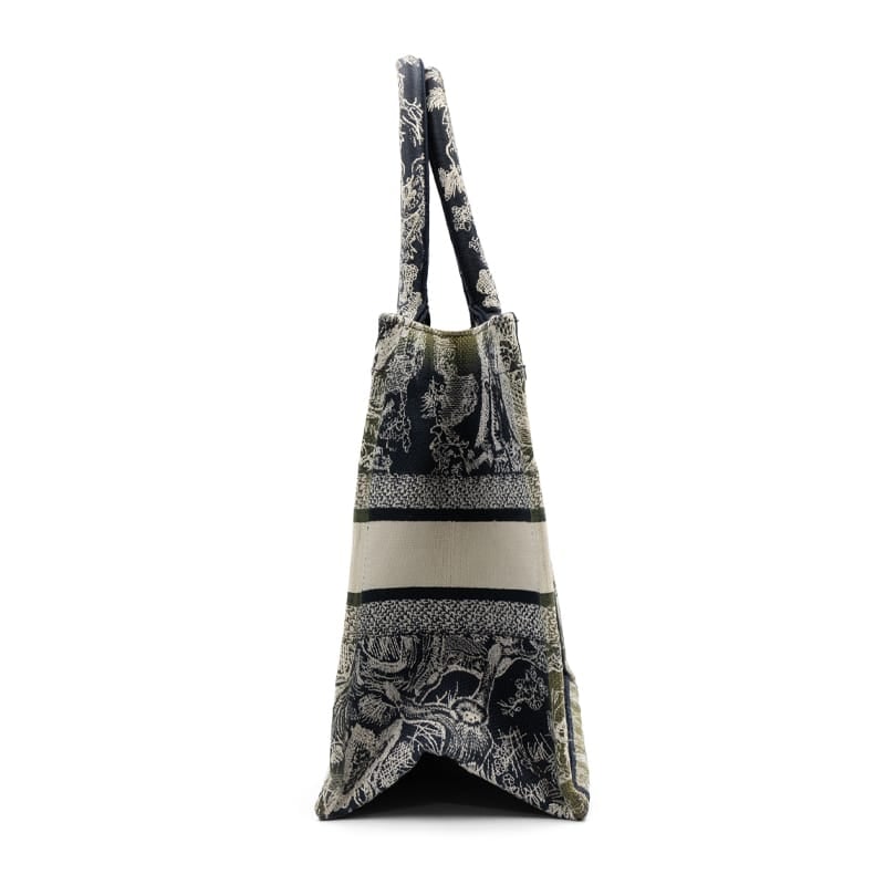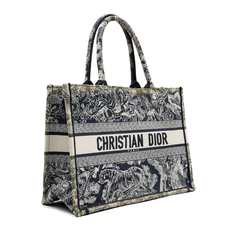 Originally introduced by Maria Grazia Chiuri, the Book Tote has become a signature silhouette of the Maison, celebrated for its structured shape and spacious interior. The design is completed with the Christian Dior Paris signature across the front, while the open-top construction and generous capacity make it ideal for daily essentials, travel, or work. Combining practicality with distinctive craftsmanship, this tote reflects Dior’s dedication to timeless luxury and artistry.