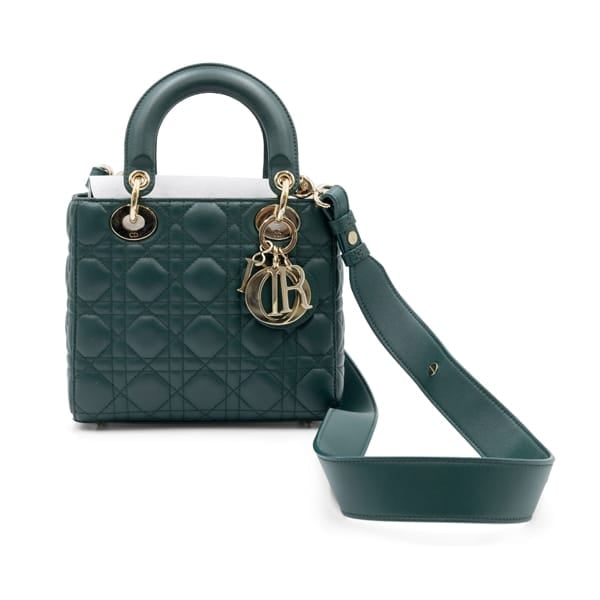 The refined green hue adds a sophisticated and modern touch, while the iconic “D.I.O.R.” charm accents the handles, offering a distinctive and recognisable detail. Designed with both style and functionality in mind, the compact interior is ideal for daily essentials, and the detachable strap allows for versatile hand, shoulder, or crossbody wear. Polished and feminine, this piece transitions effortlessly from day to evening.
