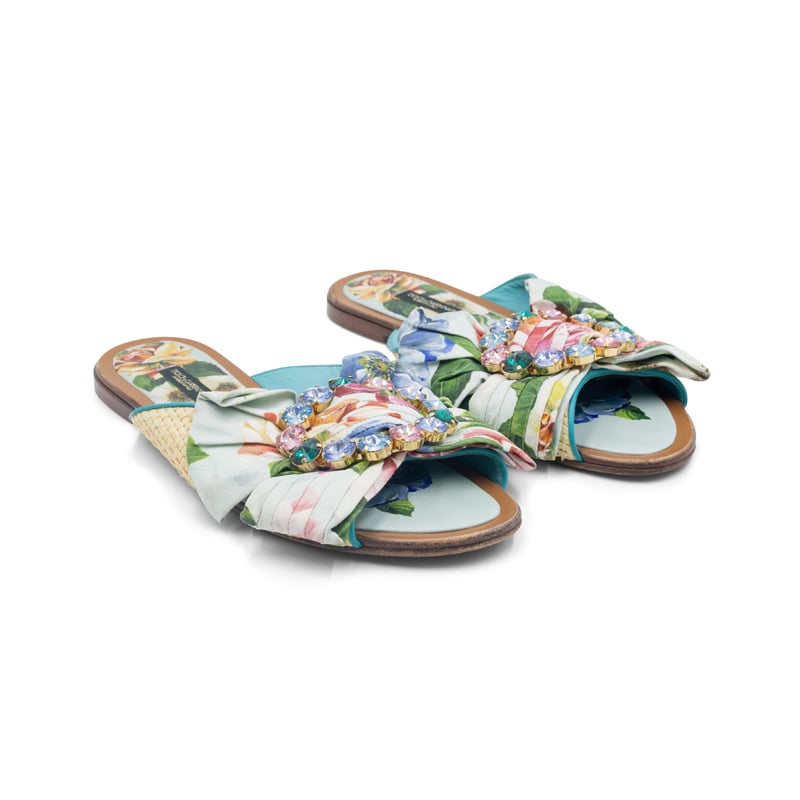 A fusion of sophistication and effortless charm, the Dolce & Gabbana Crystal Brooch Raffia Sandals are a must-have addition to any refined summer wardrobe. Perfect for pairing with breezy dresses or tailored resort wear, they bring an element of glamour to any ensemble.