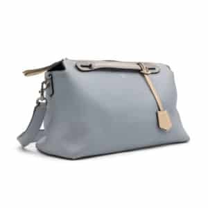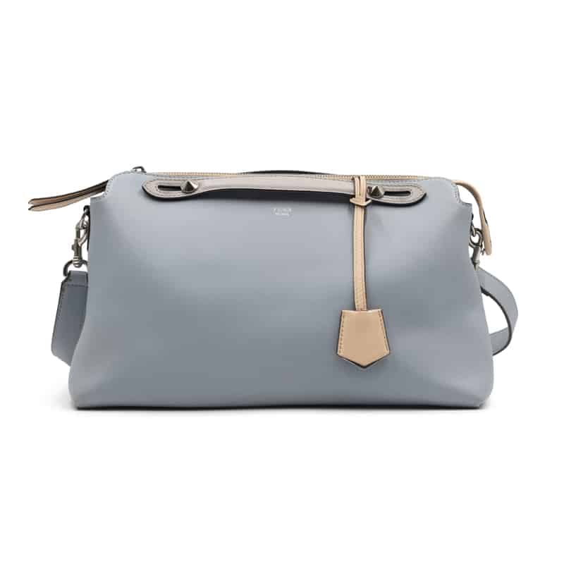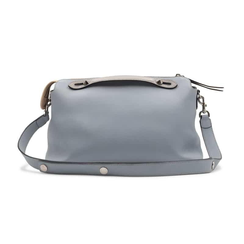 This Large By The Way is detailed with contrasting light grey dual top handles and a stone-coloured leather clochette, adding subtle depth and refinement to the design. The bag features a dual-zip top closure with leather zip pulls, silver-tone hardware, and a detachable adjustable shoulder strap for multiple styling options. The leather-lined interior includes a slip pocket for organisation, ensuring both practicality and elegance.