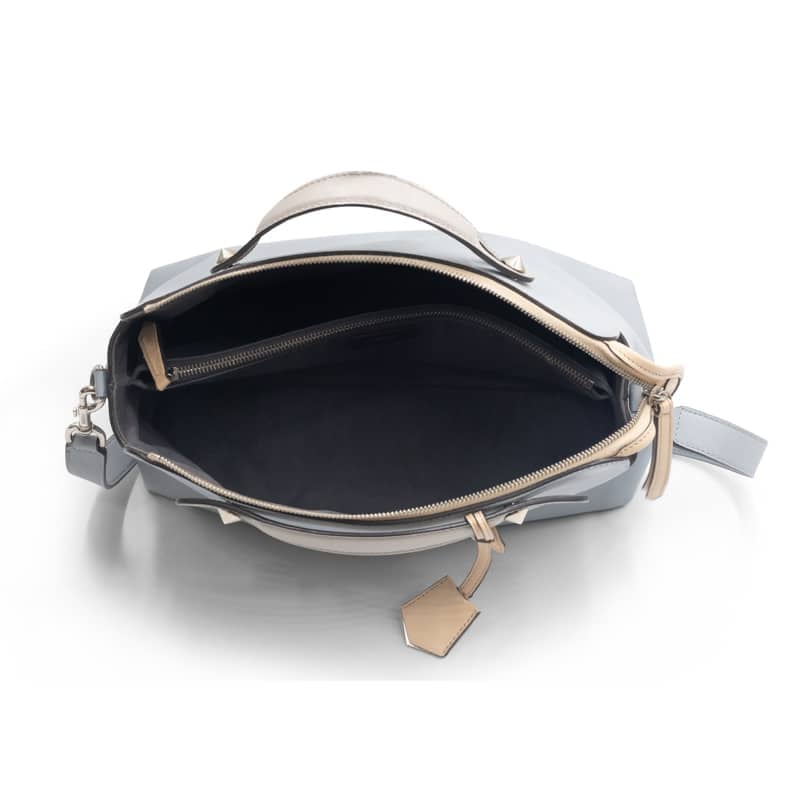 - Handles: Dual top handles in light grey and detachable adjustable shoulder strap