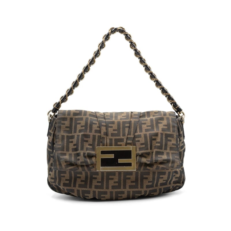 A true statement of Fendi’s signature design, the Mia Zucca Chain Shoulder Bag offers a balance of classic monogram style and everyday practicality.