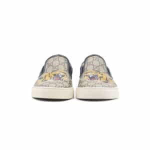 Crafted from Gucci’s signature GG Supreme coated canvas with smooth leather trim, the slip-on silhouette is adorned with a striking tiger print across the upper — a recurring symbol of strength and individuality in the brand’s collections. Elastic side inserts provide an easy, comfortable fit, while the durable rubber sole ensures everyday practicality.