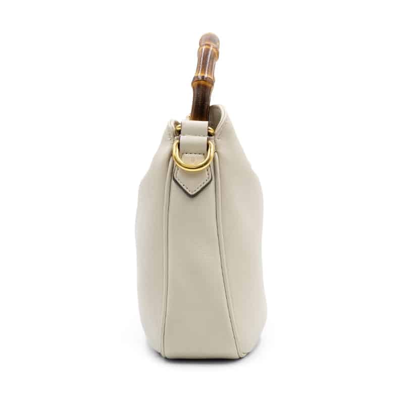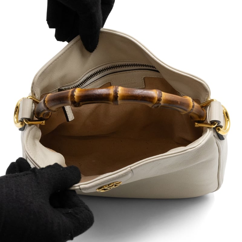 - Detail: Signature bamboo handle and GG logo