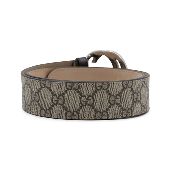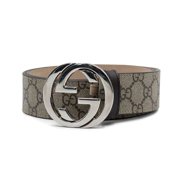 The design is defined by the Interlocking G buckle in a sleek silver-tone finish, adding a modern and refined contrast to the classic monogram canvas. Canvas enhances the structure and longevity of the belt, while the neutral tones ensure effortless pairing with both casual and elevated looks. Elegant and functional, this belt is a staple addition to any wardrobe.
