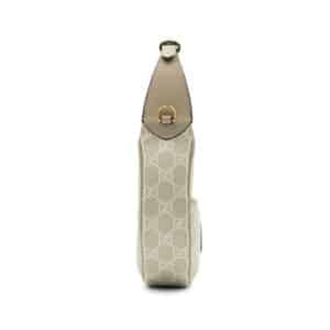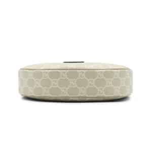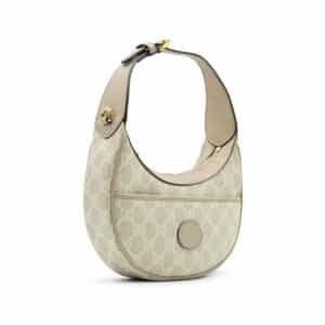 Crafted in Italy from the iconic beige GG monogram canvas with tonal leather trim, this compact shoulder bag features the signature half-moon silhouette, creating a distinctive yet understated shape. The gold-tone hardware enhances its refined appeal, while the top zip closure ensures secure storage. A single adjustable leather strap allows for comfortable wear over the shoulder, making it perfect for both day and evening styling.