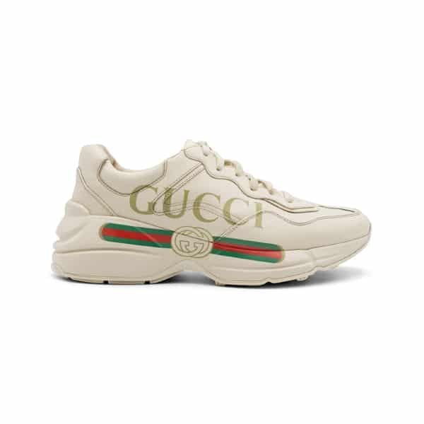 Characterised by its exaggerated sole and oversized profile, the Rhyton sneaker is accented with Gucci logo detailing, adding a strong branded element to the design. The padded interior ensures comfort for everyday wear, while the sturdy rubber sole provides durability and support. Effortlessly combining fashion and function, this style is ideal for elevating casual looks with a statement edge.