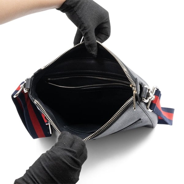 Trimmed with leather for added structure, the streamlined messenger profile is designed for functionality and ease. The adjustable shoulder strap allows for comfortable crossbody wear, while the spacious interior and additional pockets provide organised storage for daily essentials. Subtle Gucci detailing completes the look with a signature touch of understated luxury.