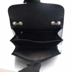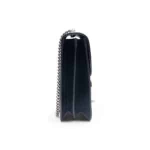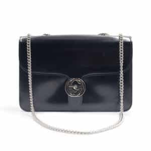 The focal point of the design is the iconic interlocking GG logo in polished metal, serving as the front flap closure and infusing the bag with unmistakable Gucci heritage. The chain shoulder strap offers versatile wear — carried over the shoulder or styled crossbody for hands-free convenience. The interior, lined in smooth leather, includes a slip pocket for organising essentials while retaining a streamlined profile.