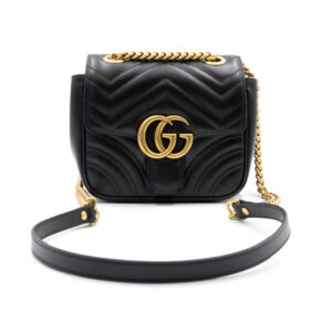 The front is adorned with the signature Double G hardware, a defining emblem of the Marmont line that reflects Gucci’s rich history. Designed for both style and practicality, the compact interior is ideal for carrying essentials, while the sliding chain strap allows for versatile wear as a shoulder or crossbody bag. Refined and effortlessly chic, this piece transitions seamlessly from day to evening.