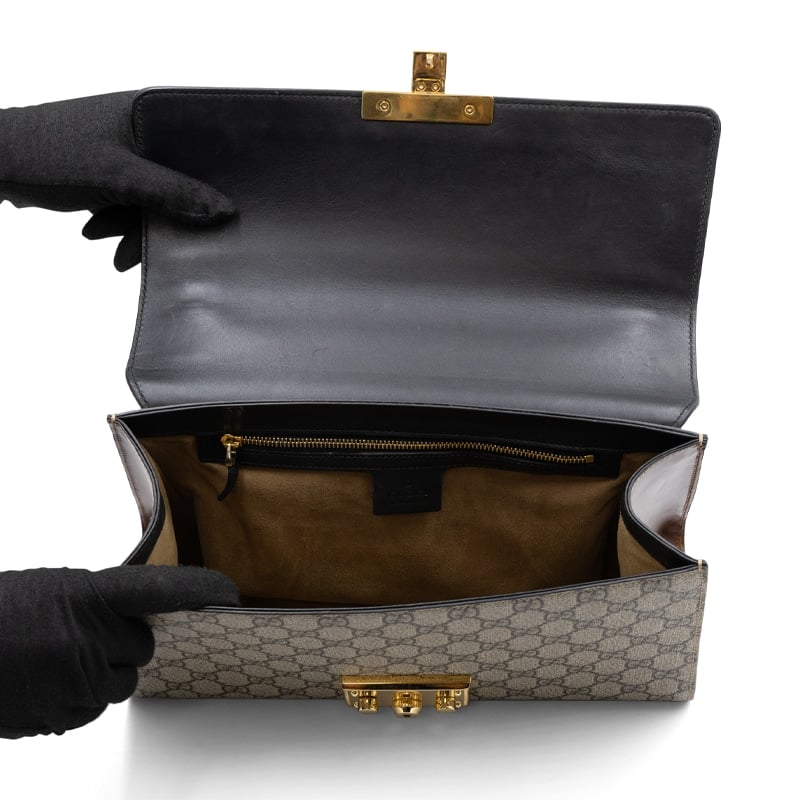 The structured body maintains its shape beautifully, while the sliding chain strap allows for both shoulder and crossbody wear. The archival-inspired padlock detail adds a distinctive vintage touch, synonymous with Gucci’s house codes. Inside, the compact yet practical interior offers organised storage for daily essentials.
