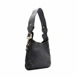 - Design: Curved mini hobo silhouette with embossed monogram