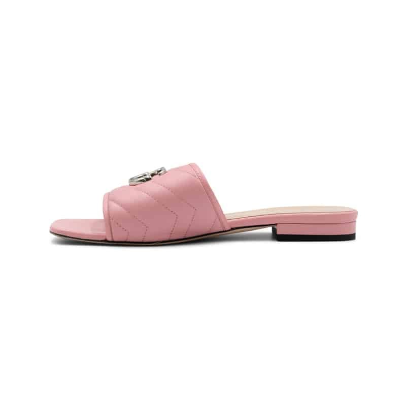 The front is adorned with the recognisable Double G logo in antique silver-tone hardware, adding a refined focal point to the feminine silhouette. Designed for effortless wear, the mules are finished with a leather-lined interior and a sleek sole, offering both comfort and elevated everyday styling.
