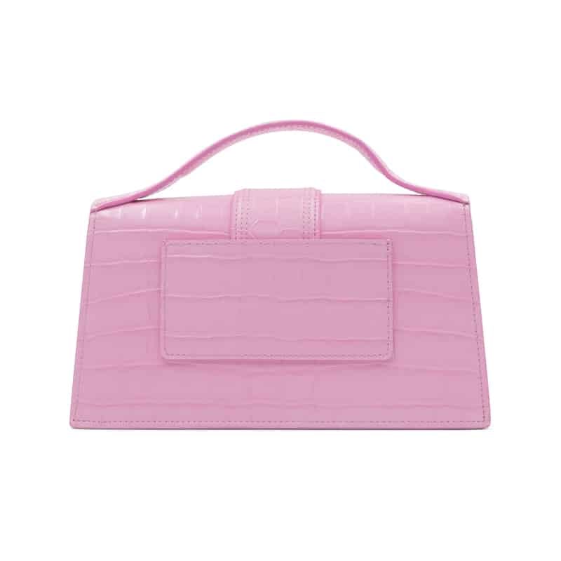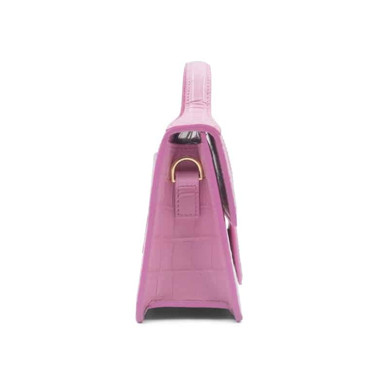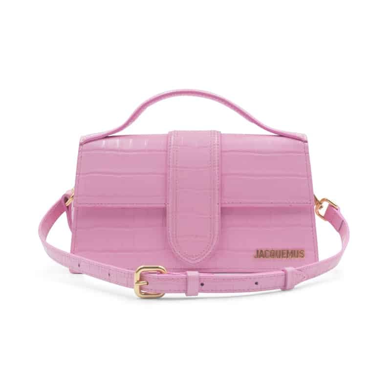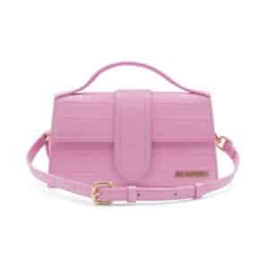 The Jacquemus Le Bambino Pink Crocodile Crossbody Bag is a bold yet refined statement piece that captures the playful spirit of the brand. Crafted in Italy from embossed leather with a crocodile-effect finish, this structured mini bag combines modern design with a touch of Parisian elegance.