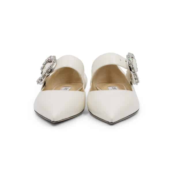 The design is enhanced with delicate crystal embellishments, adding a subtle yet eye-catching sparkle while maintaining a sophisticated finish. The classic ballet flat shape ensures comfort and ease of wear, while the slim profile and pointed toe create a graceful, polished look.