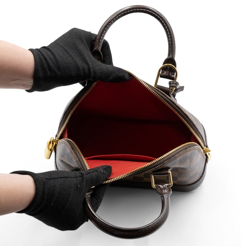 - Material: Damier Ebene canvas and leather