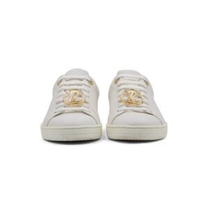 - Iconic Branding: Gold-tone LV initials in a disc on the vamp and gold-toned Louis Vuitton on the sole
