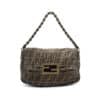 Condition: This Shoulder Bag is in good condition, moderate scratching on the logo plate. Some wear and staining on the untreated leather trim.