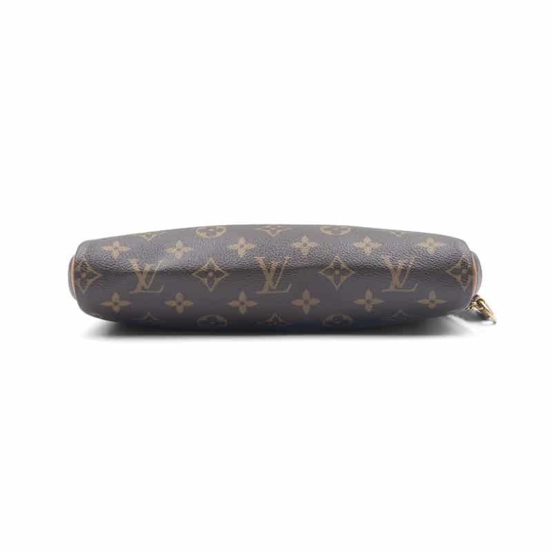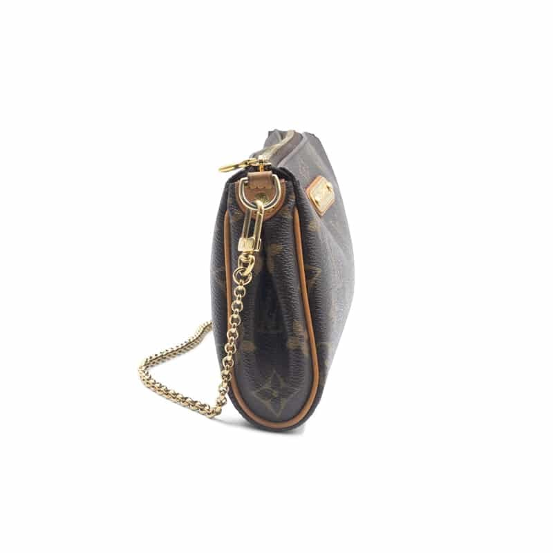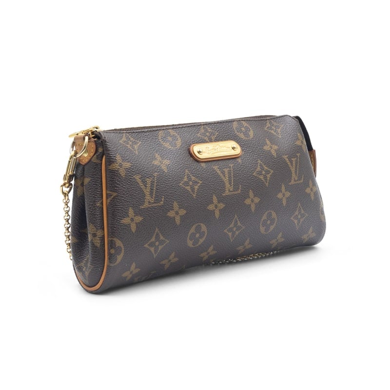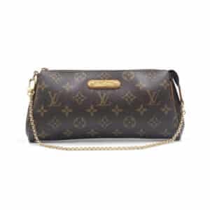 Crafted from Louis Vuitton’s iconic Monogram coated canvas with natural cowhide leather trim, the Eva Pochette features a structured rectangular silhouette adorned with a polished gold-tone Louis Vuitton nameplate. The top zip closure secures essentials, while the removable chain strap allows it to be worn as a shoulder bag or carried as a clutch.