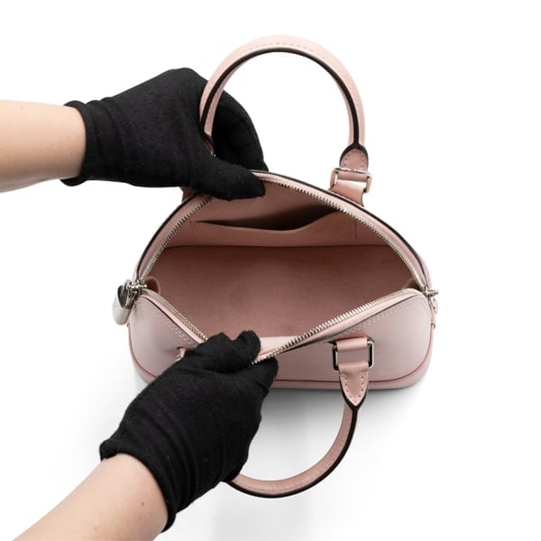 The soft Rose Ballerine shade adds a delicate, sophisticated touch, while the classic dome-shaped silhouette reflects the Alma’s Art Deco origins. Designed for versatility, the bag includes dual top handles and a detachable strap for crossbody wear. Compact yet functional, the interior is perfectly sized for daily essentials, making it an ideal choice for both day and evening styling.