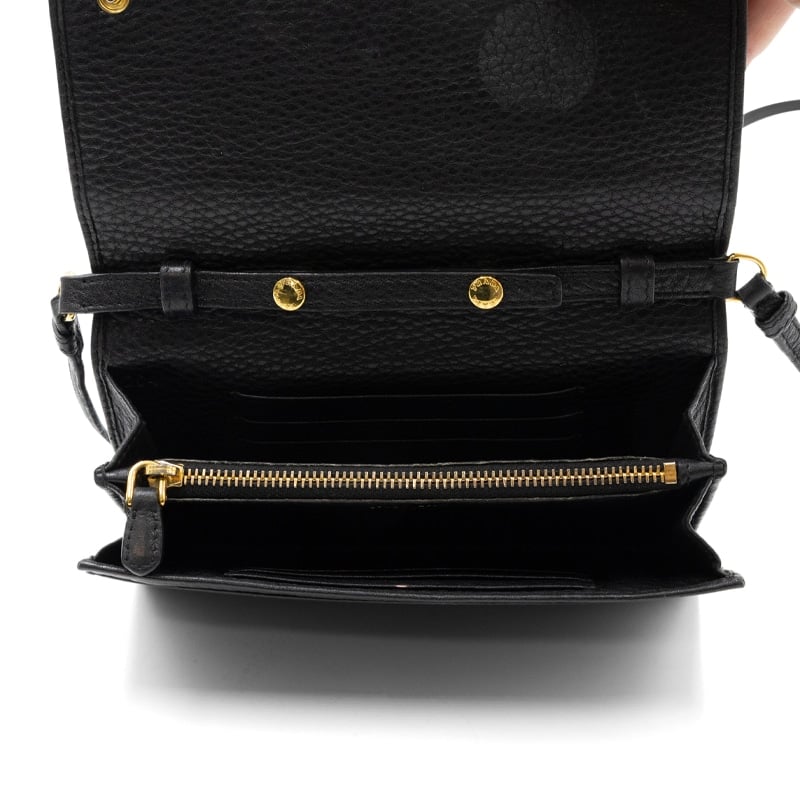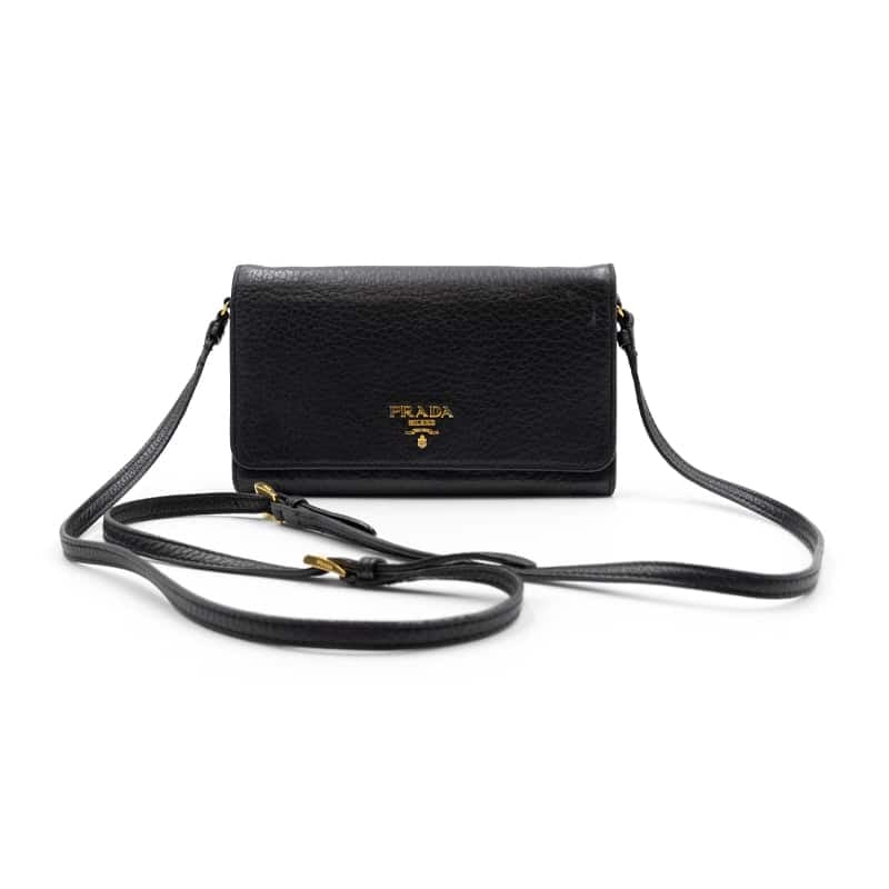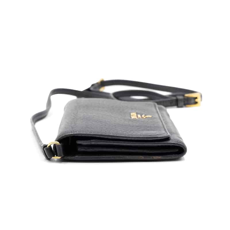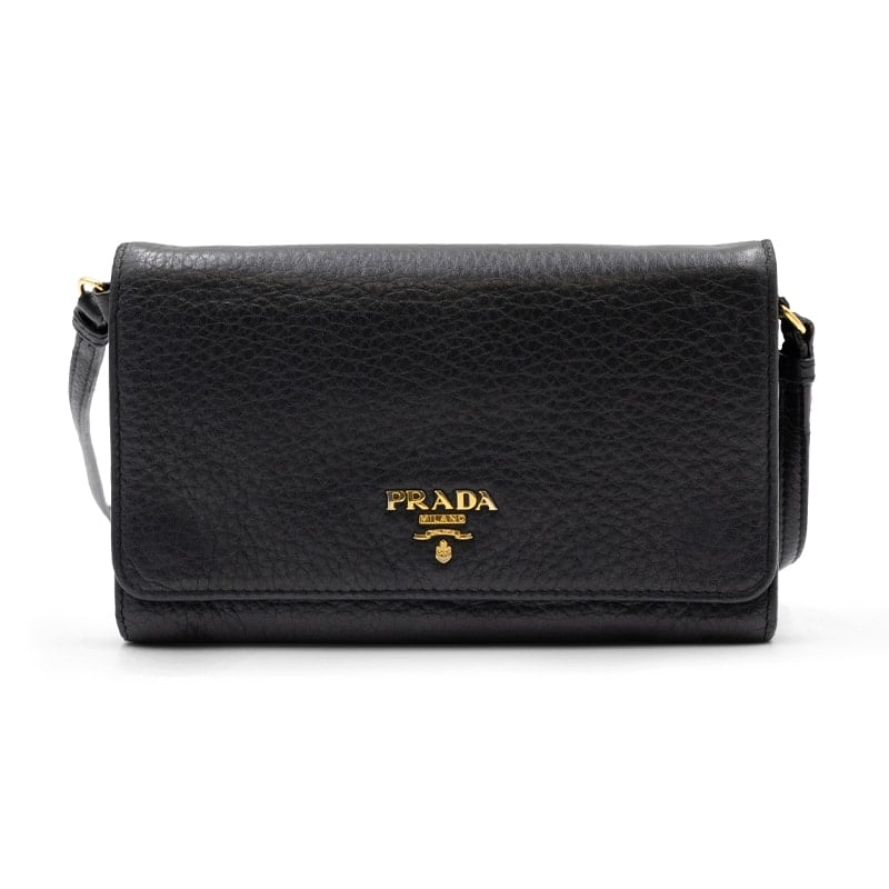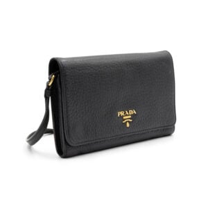 Prada Vitello Daino Black Leather Shoulder Wallet
